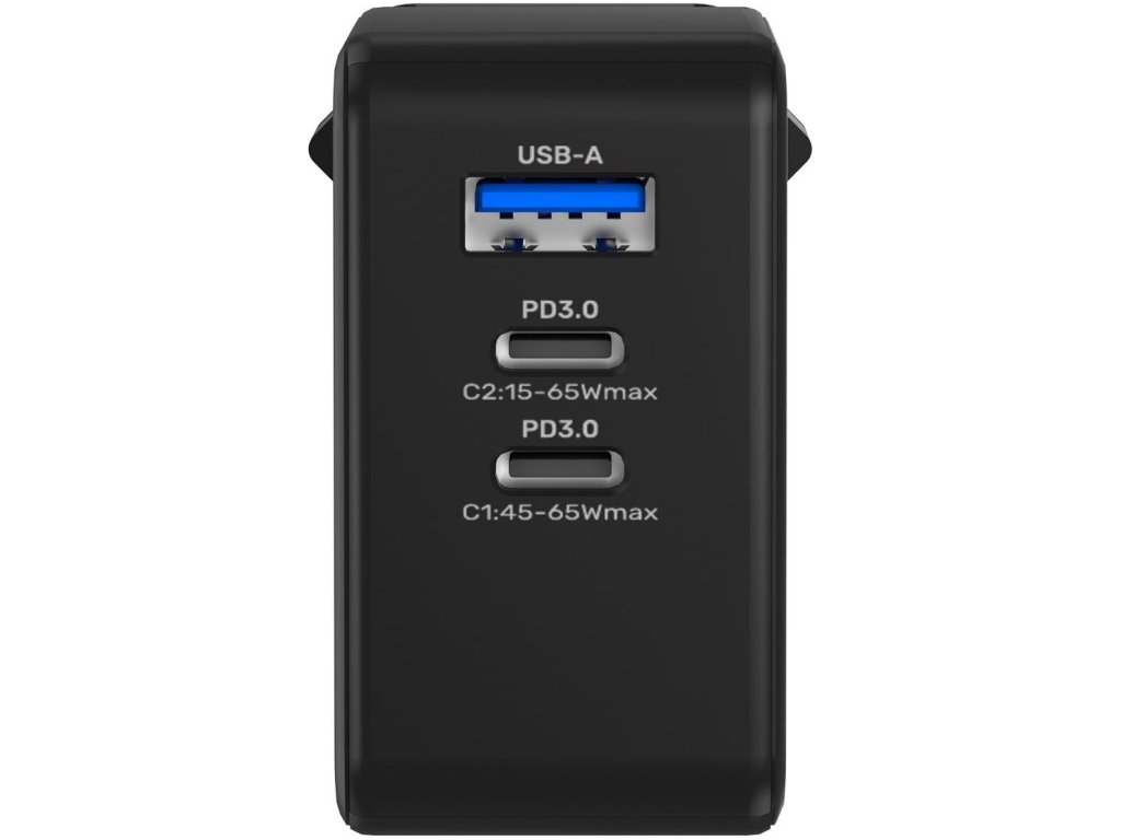 Nabíječka je vybavena dvěma porty USB-C PD, z nichž každý dokáže nabíjet maximálním výkonem 65 W, a jedním portem USB-A Quick Charge s výkonem 30 W. Nabíjejte svá sluchátka, telefon a tablet jednou nabíječkou!