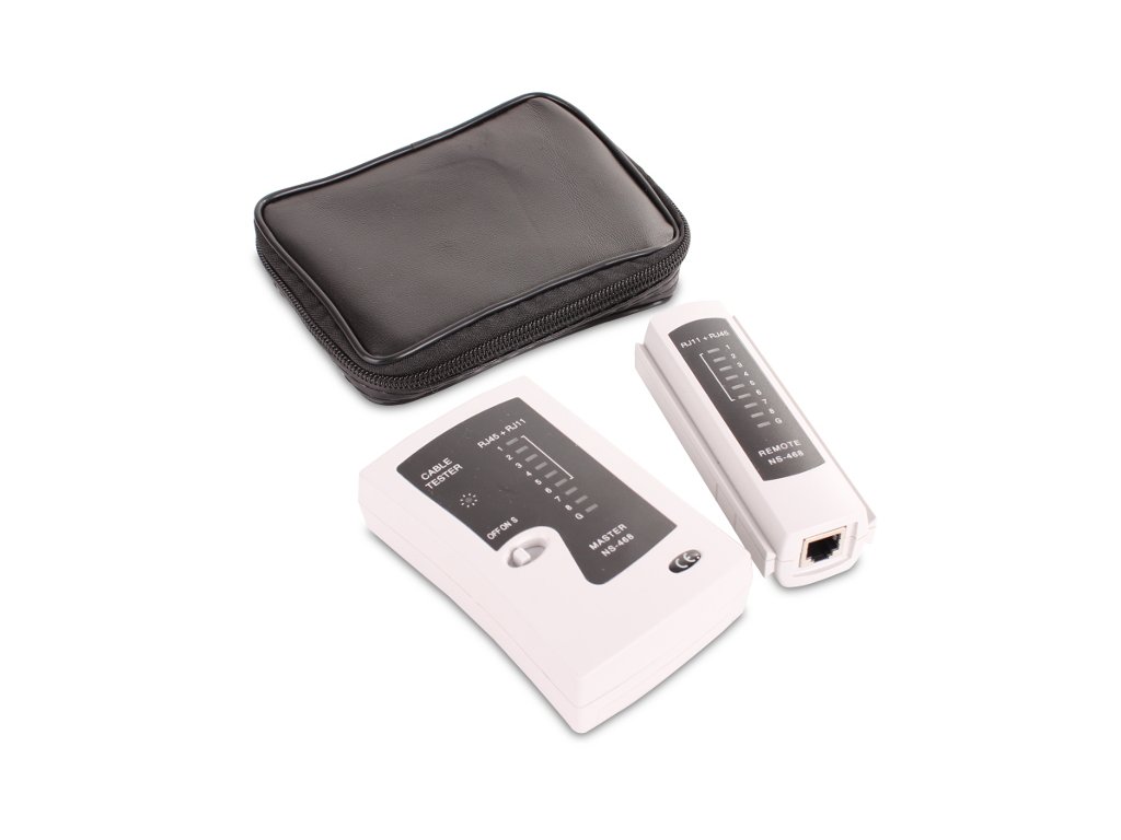 Tester LED GetFort pro kabely RJ11/RJ45 kontroluje spojení mezi jedním a druhým koncem síťového kabelu RJ11/RJ45. Umožňuje rychle a snadno najít a identifikovat poškození síťového kabelu. Zařízení se skládá ze dvou částí: hlavní části a terminátoru namontovaného na obou koncích testovaného úseku kabelu. Po zapnutí zařízení tester kontroluje každý vodič zvlášť pomocí dvou rychlostních režimů a v případě kabelů FTP správnost připojení stínění k modulární zástrčce. Výsledek testu bude indikován rozsvícenými diodami.