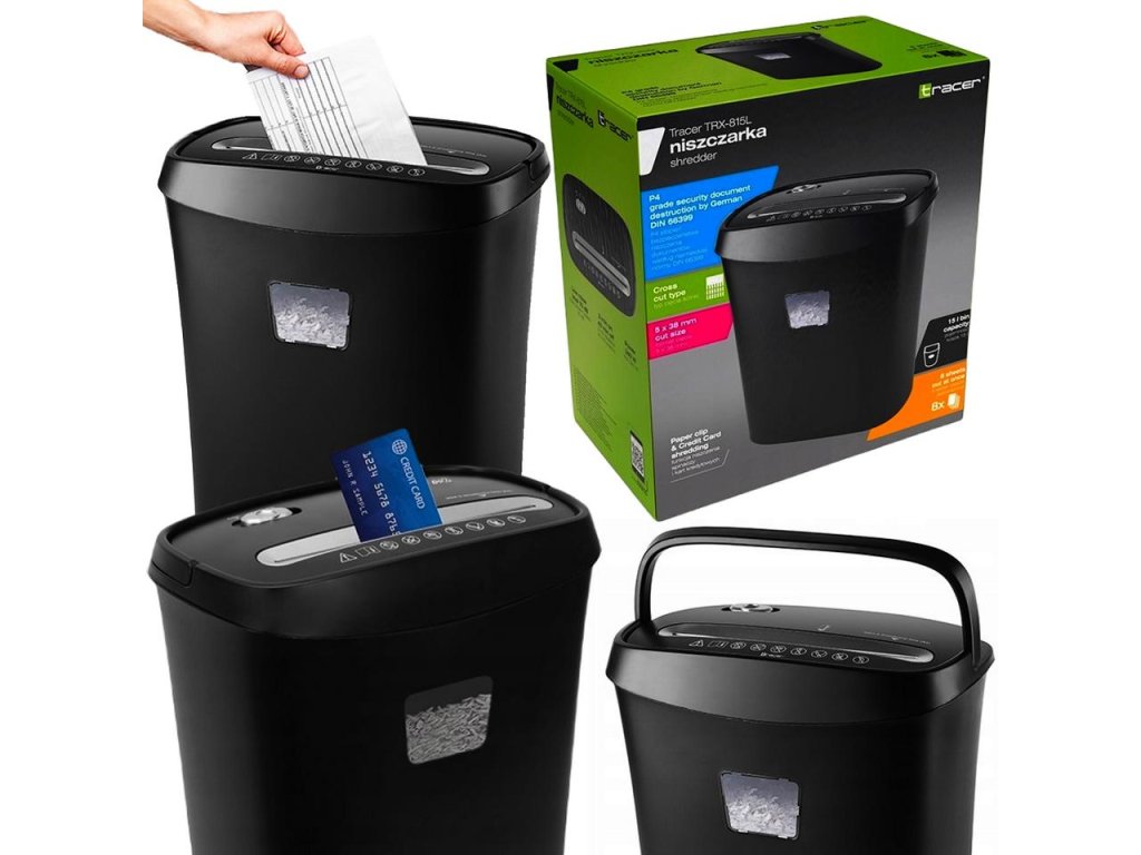 Skartovačka papíru a kreditních karet Tracer TRX-815L o objemu 15 litrů - klíčové vlastnosti: