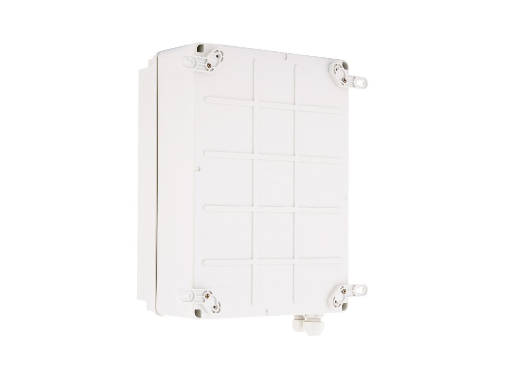 | Bytová výstavba | Bezhalogenový materiál odolný proti UV zářeníBarva šedá (RAL7035)Kabelové vývodky 1 x M16, 1 x M20 |