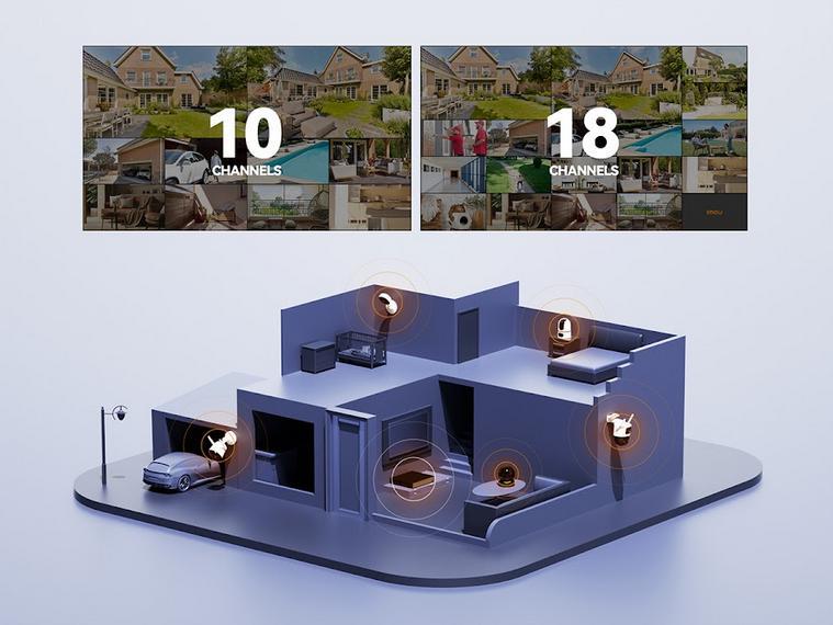 Záznamník podporujeaž 10 IP kamer současněcož usnadňujerozšířit monitorovací systém a přizpůsobit ji rostoucím potřebám uživatelů.