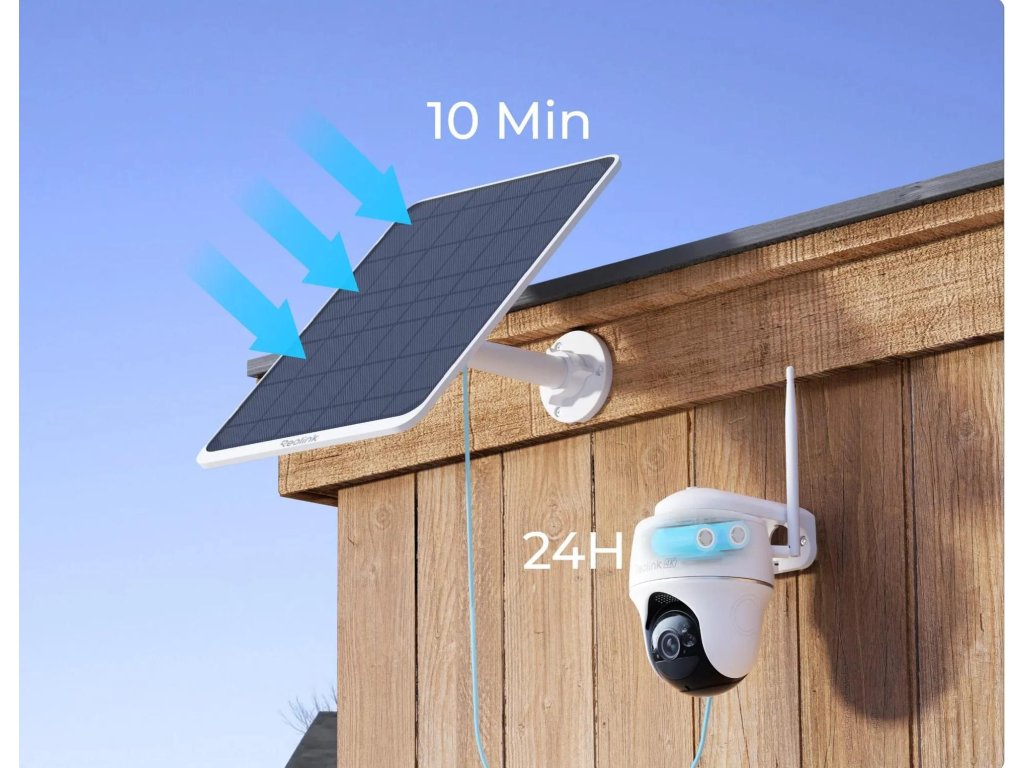 Solární panel Reolink 3 nabízídvakrát účinnější ve srovnání s předchozí generací, což umožňuje ještě efektivnější nabíjení fotoaparátu. Byl navržen tak, aby fungoval svšechny bateriové fotoaparáty Reolink, což zaručuje stabilní a ekologické napájení.