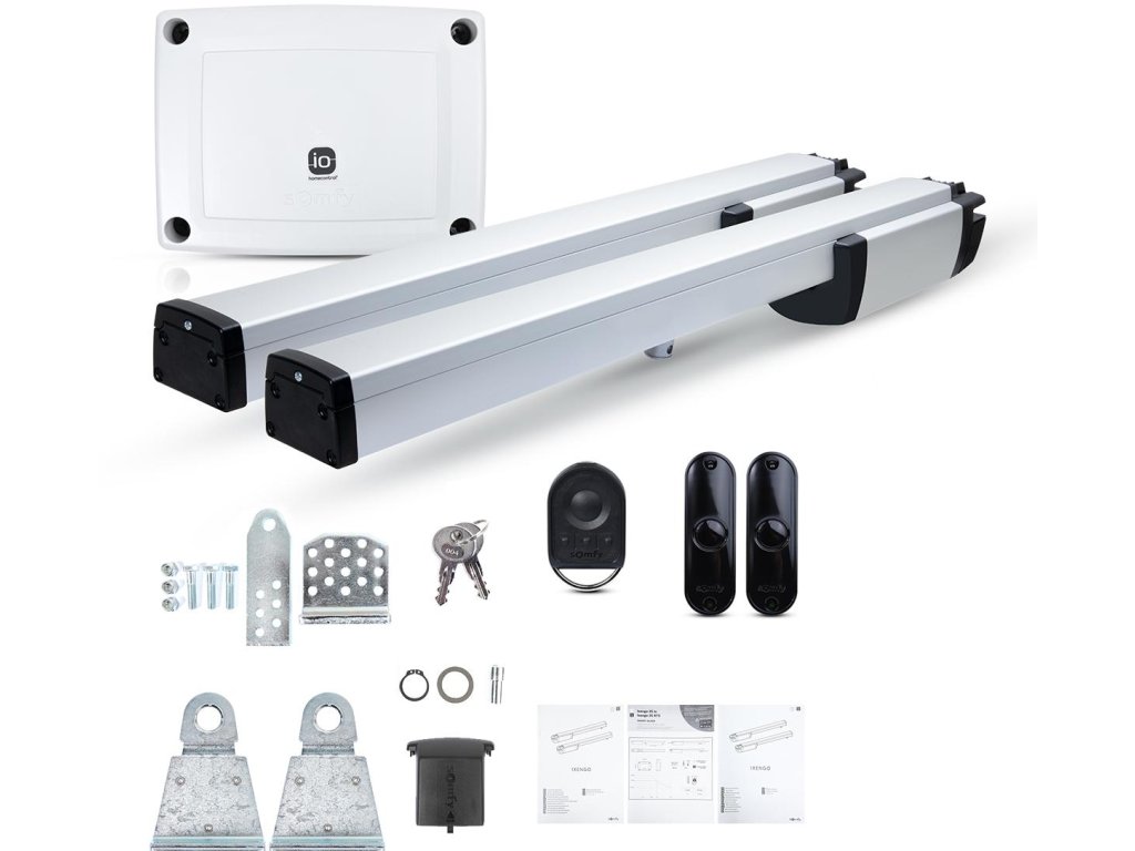 Sada pro křídlové brány s délkou křídla do 4 m a hmotností do 400 kg. Výrobek je určen pouze pro instalaci profesionály v oblasti domácí automatizace a pohonů. Návod k instalaci SOMFY, který je součástí výrobků, je určen pro profesionály.