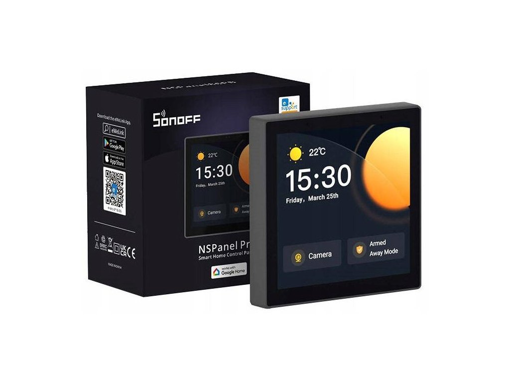 - Sonoff NSPanel PRO Black umožňuje s ovládání osvětlení, senzorů, teploty, kamery atd . Upozorní vás také, když se někdo vloupá do vašeho domu!