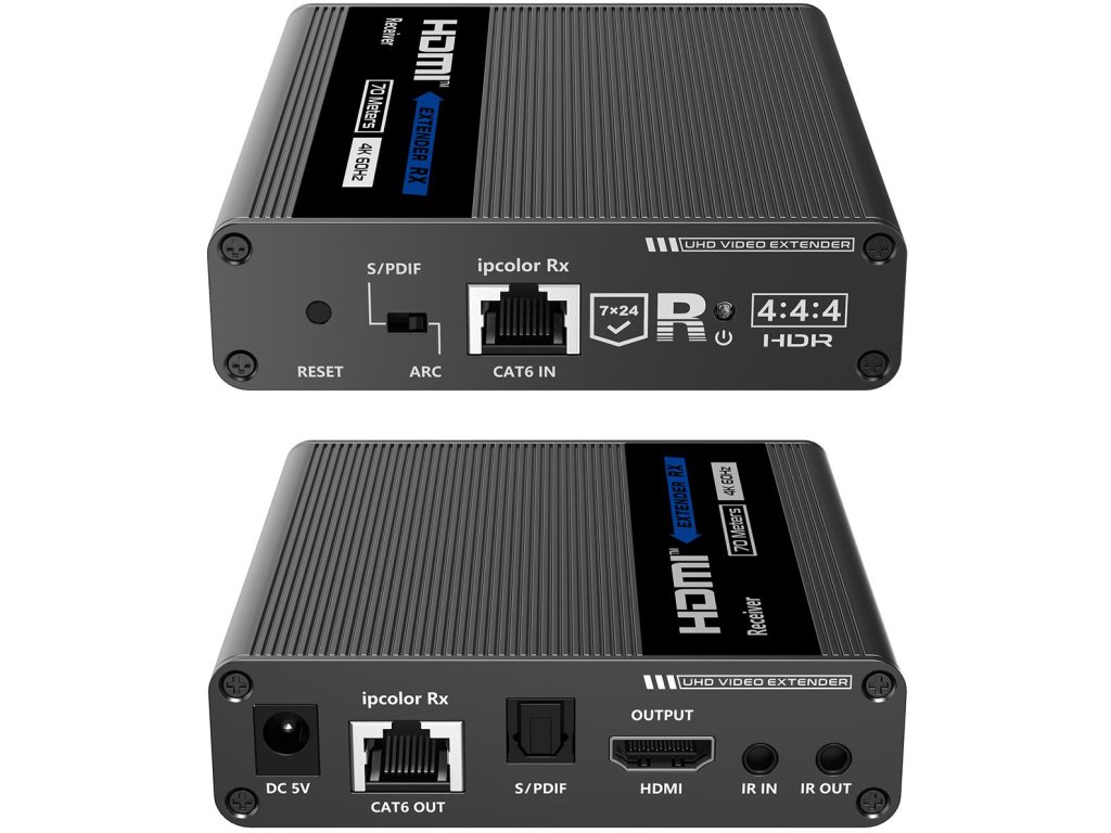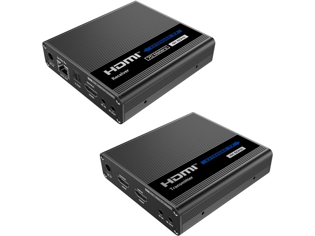 Extender HDMI umožňuje přenášet a prodlužovat nekomprimovaný signál HDMI UHD 4K @ 60Hz prostřednictvím síťového kabelu CAT6 / 6A / 7, přenosová vzdálenost je až 70 metrů při rozlišení 4K s nulovou latencí.