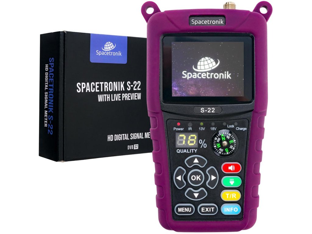 Měřič S 22 SAT společnosti Finder Spacetrnik má funkce pro indikaci chyb BER, PWR a SNR. Vestavěný spektrální analyzátor. Přístroj podporuje všechny tradiční SAT LNB a konvertory UNICABLE I/II SCR/DCSS. Měřič SAT má zabudovaný gyroskop pro nastavení úhlu a kompasu.