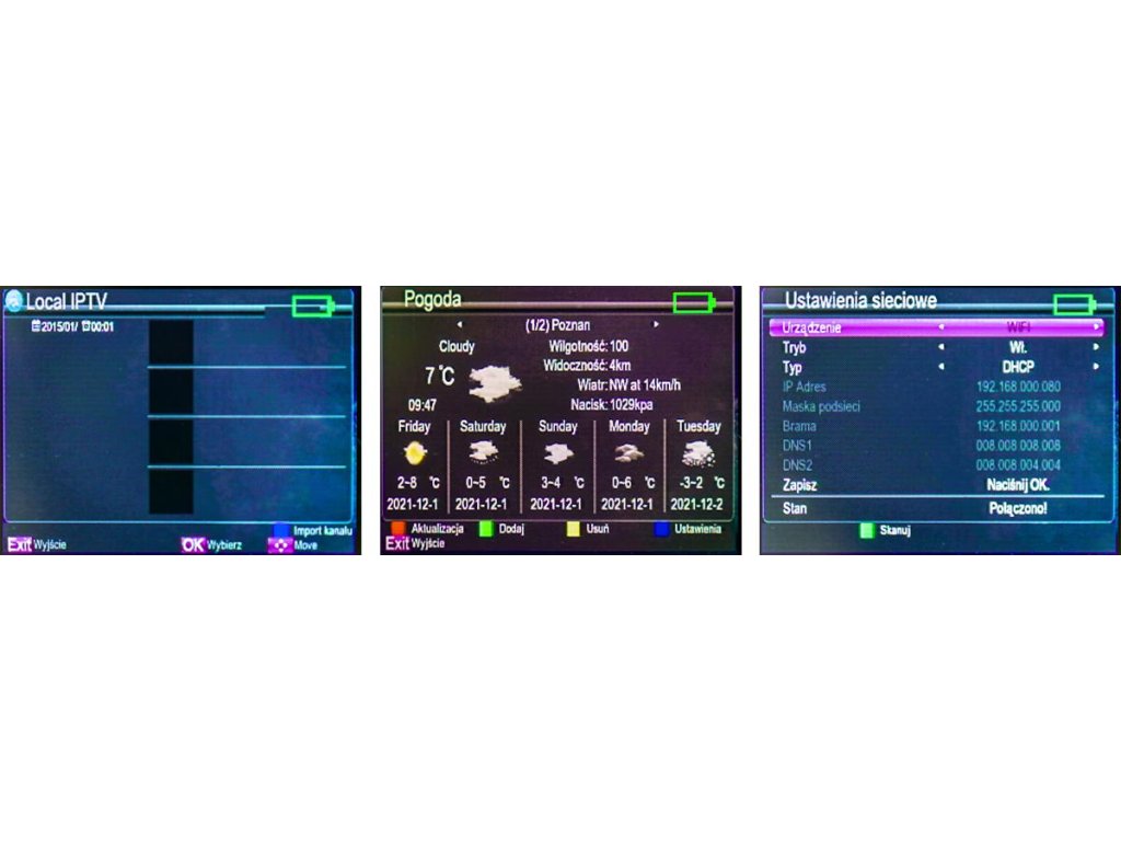 Přístroj podporuje WiFi připojením externí USB WiFi antény s čipovou sadou RT5370, která umožňuje přístup k dalším funkcím: