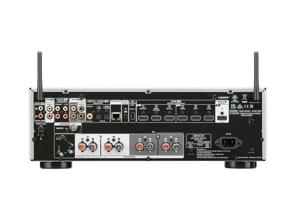 Vychutnejte si vysoce kvalitní poslech a video v rozlišení 8K HDMI z dvoukanálového síťového stereofonního přijímače s integrovaným bezdrátovým streamováním hudby HEOS® a tunerem DAB+.