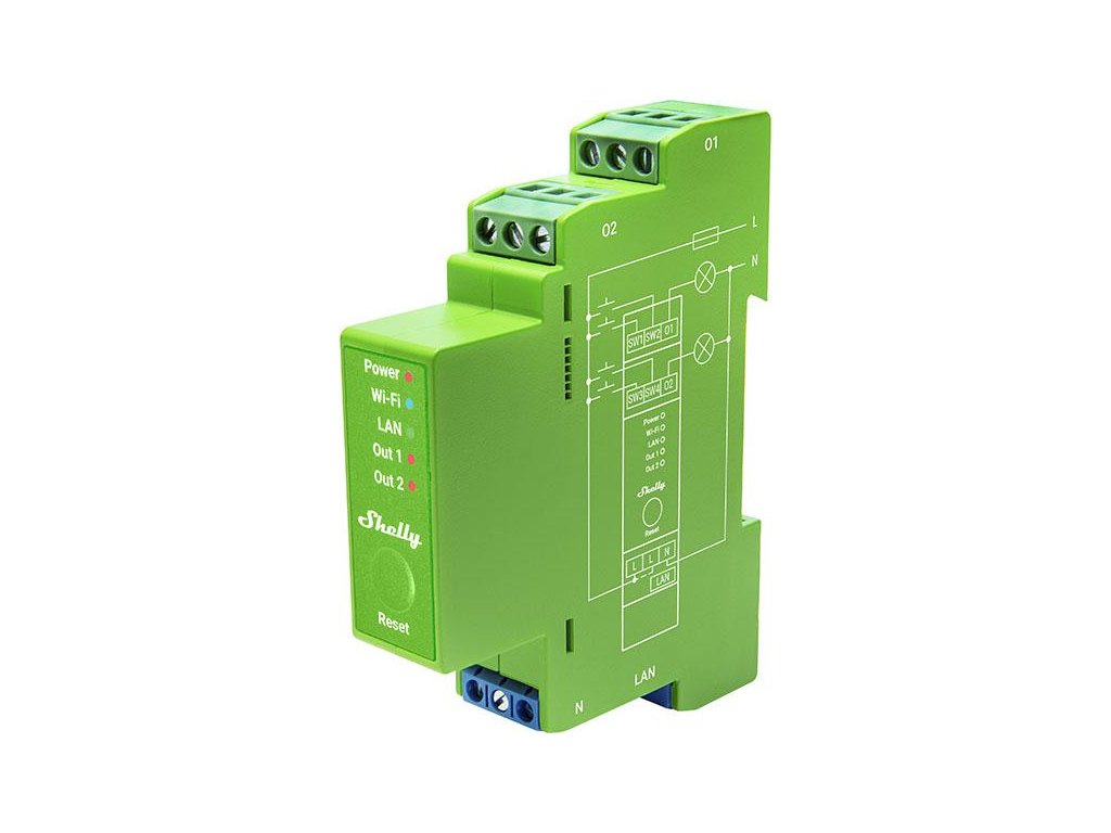 Shelly Pro Dimmer 2PM - Profesionální dvoukanálový stmívač DIN s měřením spotřeby energie, Wi-Fi, LAN a Bluetooth