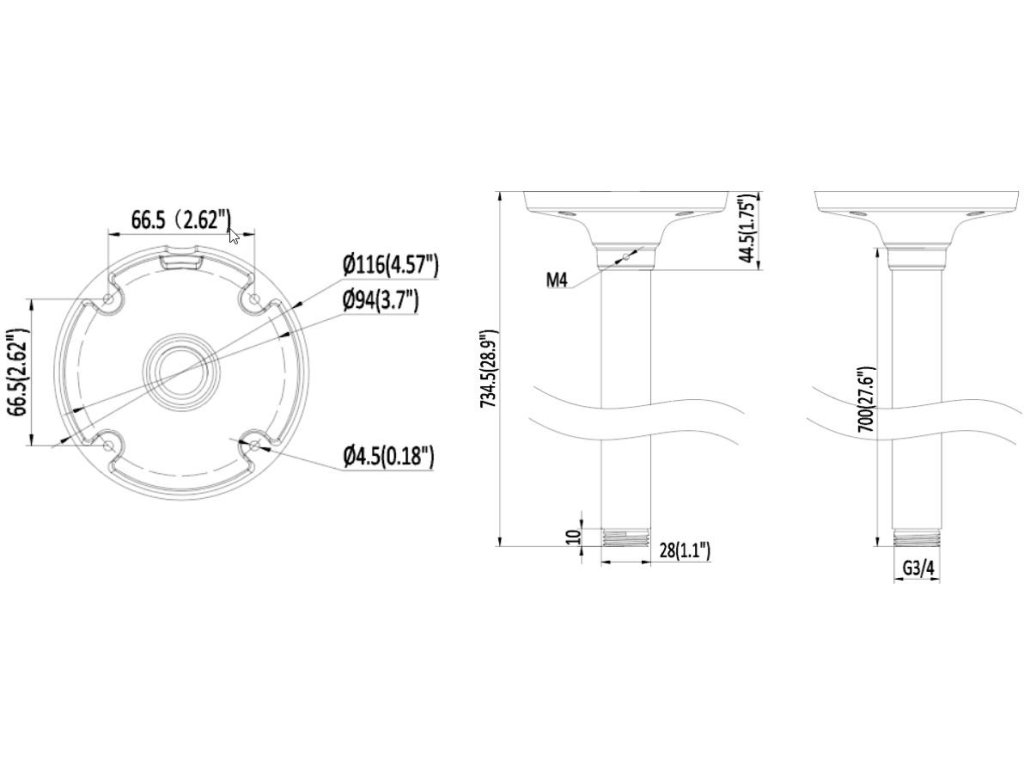 Držák určený pro kamery Kenik dome a PTZ pro montáž na strop.