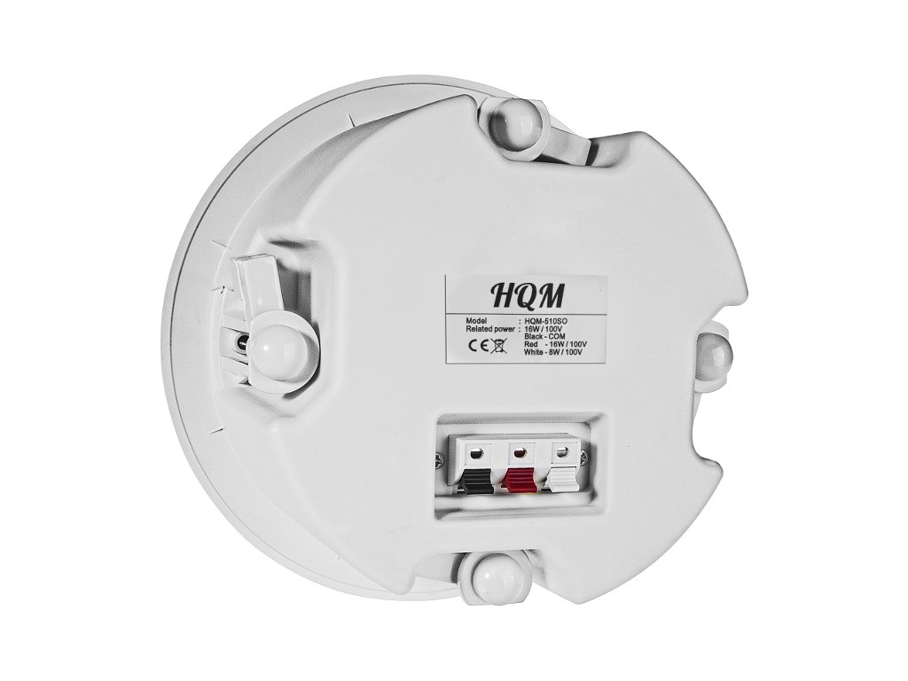 Kryt stropního reproduktoru HQM510 SO je vyroben z vysoce kvalitního plastu ABS. Použití tohoto typu suroviny zajišťuje, že zařízení je zcela odolné proti jakémukoli promáčknutí nebo poškrábání. Existuje také další možnost pokrýt kryt reproduktoru různými typy barev. Tato možnost umožňuje libovolně přizpůsobit vzhled zařízení instalovanému povrchu a individuálním preferencím koncového zákazníka.
