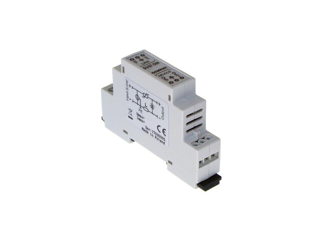 SUG-7-DIN/24VAC je určen k ochraně elektronických zařízení napájených střídavým napětím 24 V před bleskovými výboji, přepěťovými impulsy a také před náhlým zvýšením napětí, ke kterému může dojít v důsledku poškození síťového adaptéru. Vestavěná automatická pojistka 2A (na vyžádání 1,1A) omezuje riziko poškození napájecí jednotky (transformátoru) a snižuje riziko požáru v případě zkratu v elektroinstalaci nebo v připojeném zařízení.
