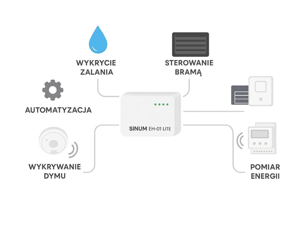 Moderní, komplexní balíček automatizace budov navržený tak, aby zajistil bezpečnost, pohodlí a optimalizaci spotřeby energie ve vaší domácnosti. Díky integraci zařízení Sinum od polského výrobce TECH Sterowniki získáte centrální ovládání, spolehlivou ochranu proti zaplavení a kouři, vzdálenou správu vrat a sledování spotřeby energie - to vše dostupné prostřednictvím mobilní aplikace a přívětivého rozhraní s možností rozšíření o další prvky, jako je ovládání vytápění, ovládání rolet, ovládání osvětlení a mnoho dalších funkcí.
