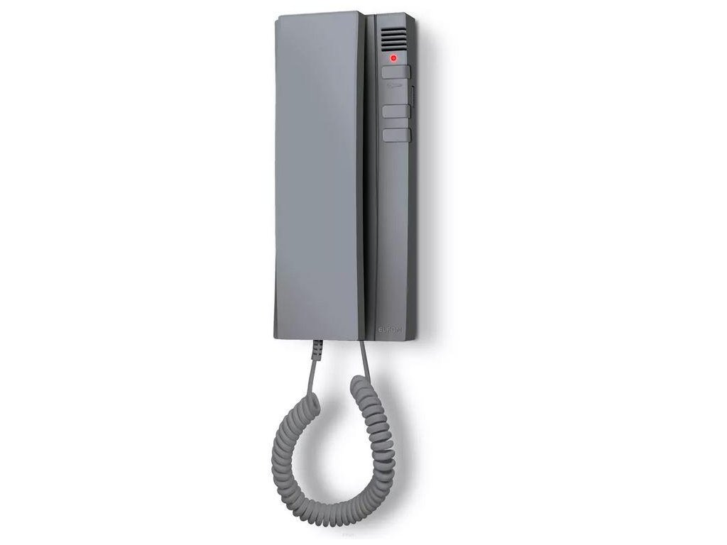 Šedé sluchátko, určené pro2-vodičovýinterkomové a videointerkomové systémyELFON Optimaoba s jedním vstupem i s více vstupy.
