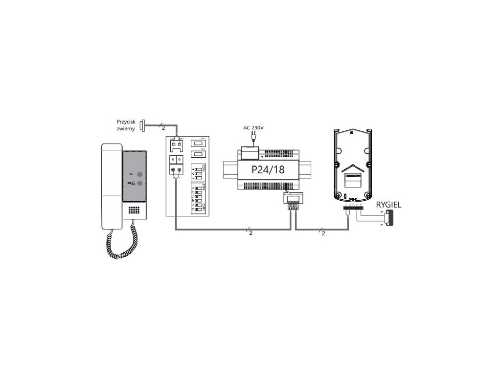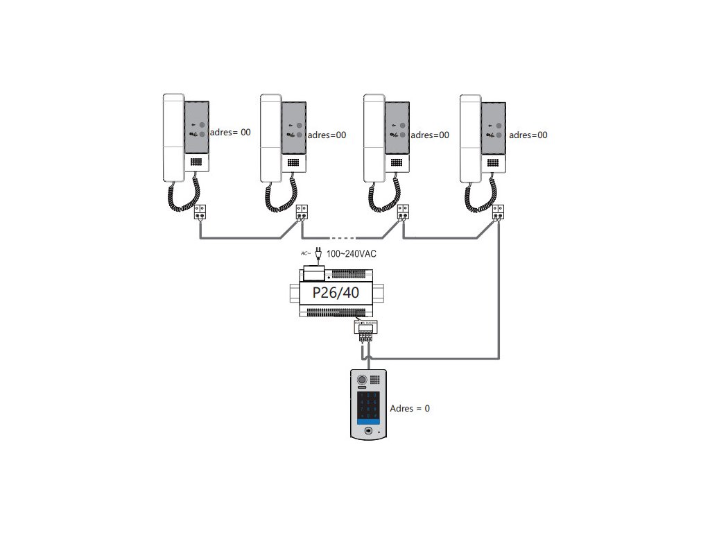 Základní schéma připojení systému. 1 dveřní stanice + 1 uniphone