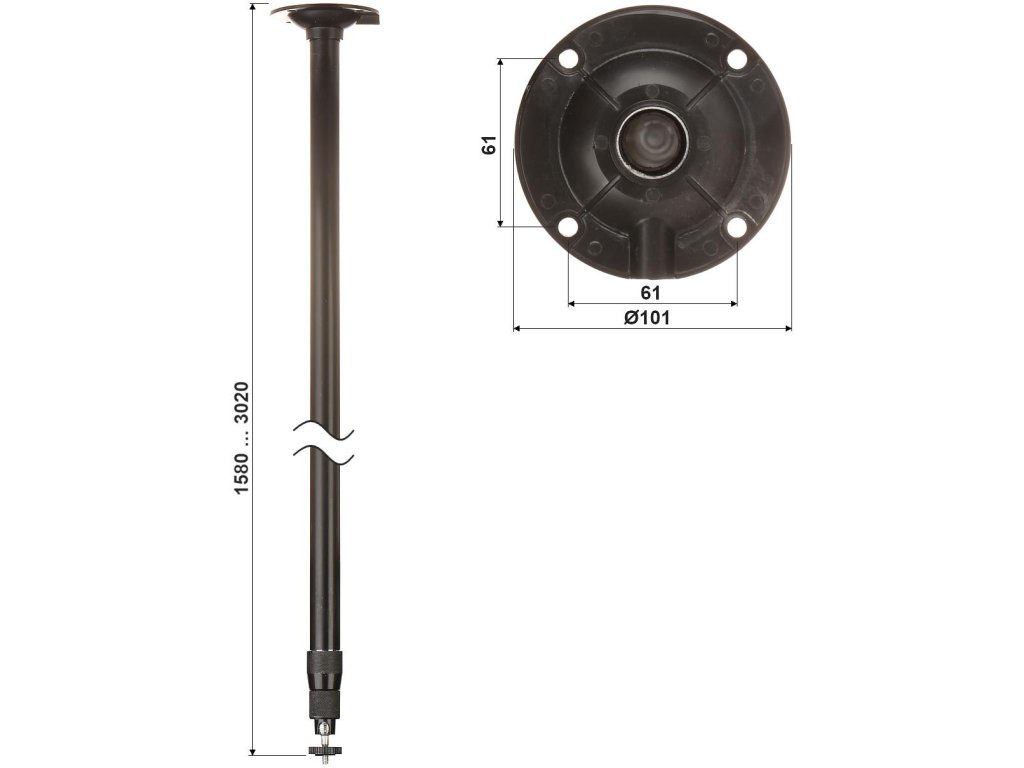 | Rozměry v mm (š x v x h): | Ø 0,101 x 1,58 ... 3.02 m |