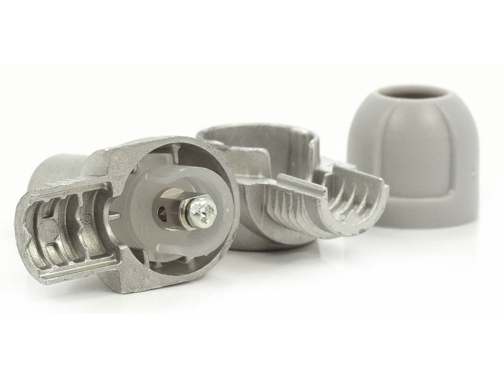 Konektor IEC se skládacím upevňovacím systémem. Systém upevnění kabelu spočívá v odstranění jedné části konektoru, vložení vodiče kabelu a nakonec nasazení odstraněné části konektoru. Provedení z odlitku (zámku) zaručuje vysoké stínění.