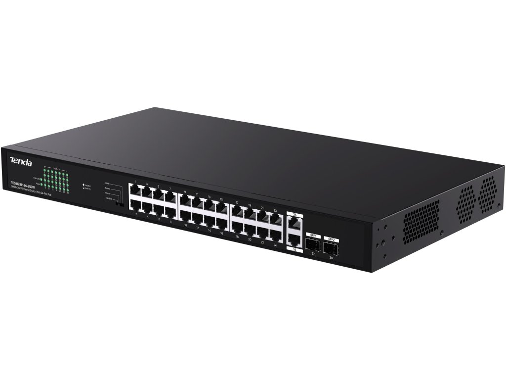POE switch Tenda TEG1128P-24-250W je pokročilé síťové zařízení, které kombinuje vysoký výkon a spolehlivost. Zajistí vaší firmě stabilitu a rychlost přenosu dat a splní požadavky i těch nejpokročilejších aplikací. Důvěřujte značce Tenda a zažijte kvalitní výkon s přepínačem TEG1128P-24-250W.