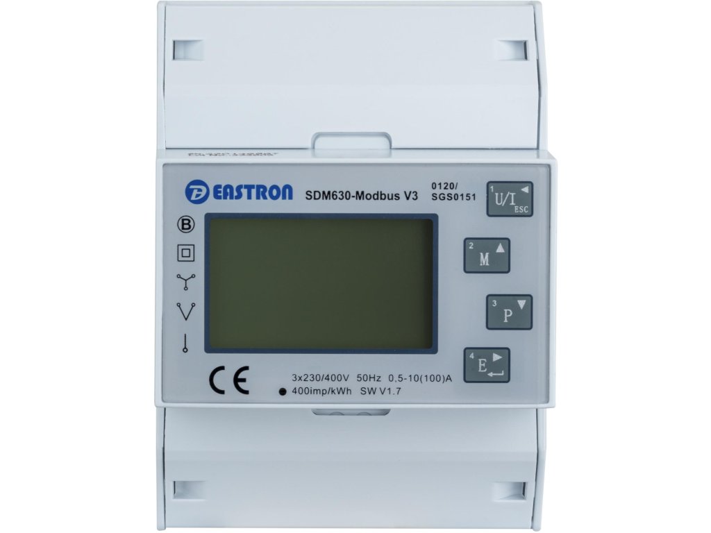 Nabízíme měřicí přístroj Eastron SDM630 Modbus v nejnovější verzi "V3" s portem RS-485 a protokolem Modbus-RTU certifikovaným MID. Má dva pulzní výstupy, včetně jednoho konfigurovatelného výstupu.