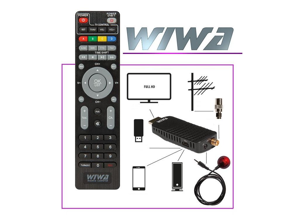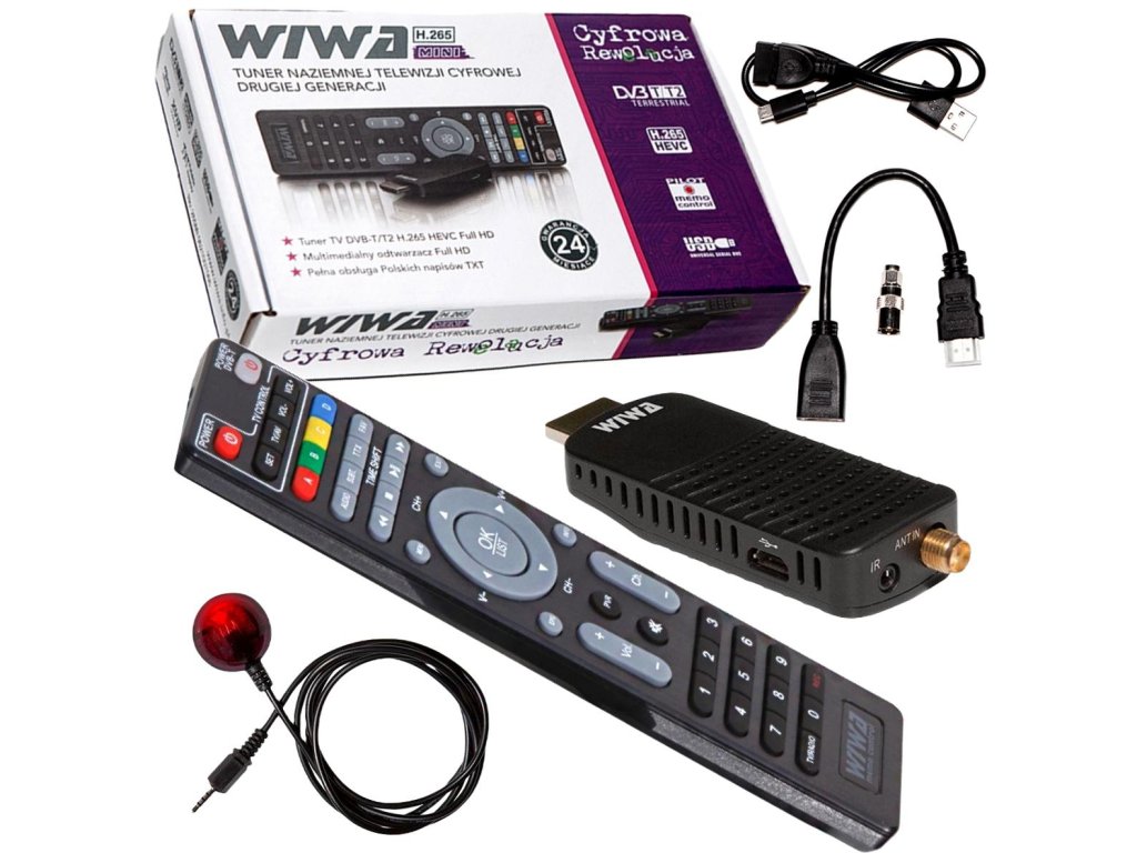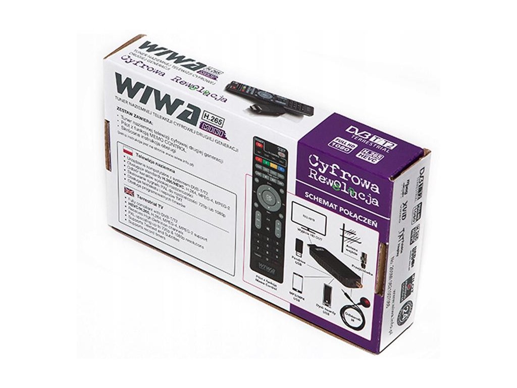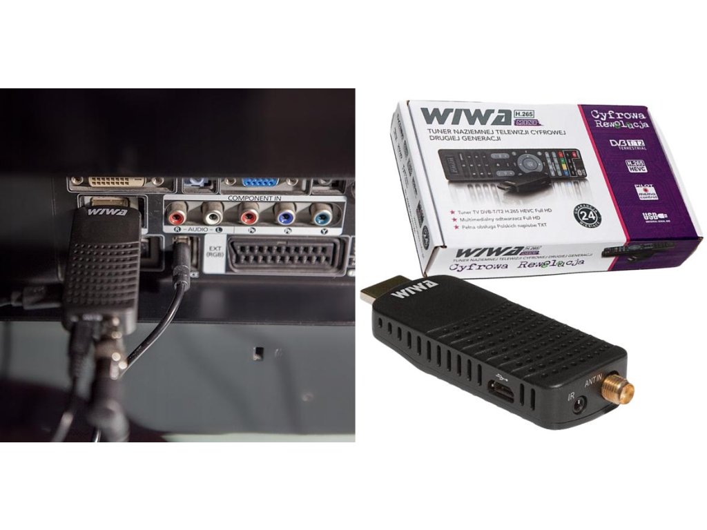 Moderní tuner WIWA H.265 MINI druhé generace (dekodér) pro neviditelnou montáž na zadní stranu televizoru. Komunikace dekodéru s dálkovým ovladačem probíhá prostřednictvím diskrétního infračerveného přijímače, který je součástí dekodéru. Tuner (dekodér) podporuje volně vysílané kanály digitální pozemní televize v nejnovější technologii H.265/HEVC. Tato norma bude v Polsku platit od roku 2022.