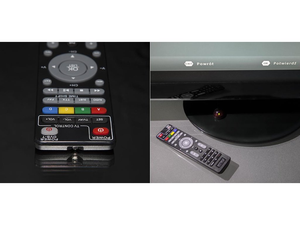 Ovládejte pokročilé funkce dekodéru DVB - T/T2 WIWA H.265 MINI, aniž byste museli vstát z pohovky - bezdrátový dálkový ovladač Memo Control umožňuje rychlý přístup k užitečným funkcím, jako je teletext nebo průvodce kanály. Navigaci usnadňuje menu v polštině.