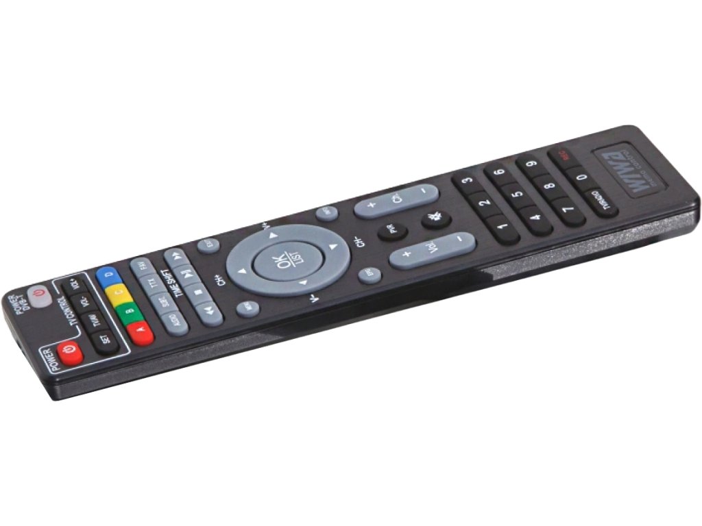 Elegantní dálkové ovládání s tlačítky na mikrotužkách poskytuje rychlý přístup k dekodéru DVB - T/T2 WIWA H.265 MINI k nejdůležitějším funkcím dekodéru, včetně průvodce kanály a nahrávání vybraných programů.