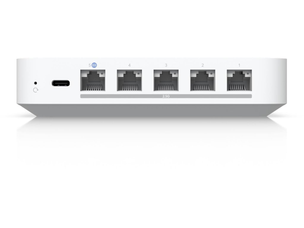 Ubiquiti UCG-Max je vybaven 5× 2,5G gigabitovými ethernetovými porty, z toho 1× port WAN a 4× port LAN. UniFi Cloud Gateway Max podporuje síť UniFi. Spravuje více než 30 zařízení sítě UniFi a více než 300 klientů. UCG-Max může směrovat provoz rychlostí až 1,5 Gb/s s IDS/IPS. Bezpečnostní funkce, jako je identifikace zařízení, identifikace provozu, omezení země a blokování reklamy, lze povolit bez vlivu na výkon směrování.