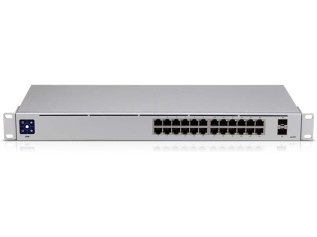 Přepínač Ubiquiti UniFi Switch 24 (USW-24) je spravovaný přepínač na 2. vrstvě s 24 porty Gigabit Ethernet a 2 porty SFP určenými pro optické připojení 1 Gb/s.