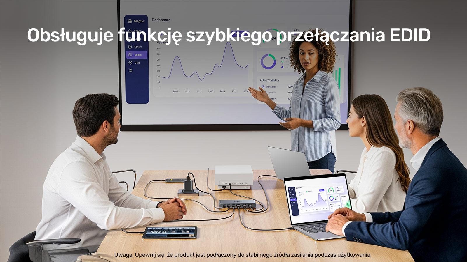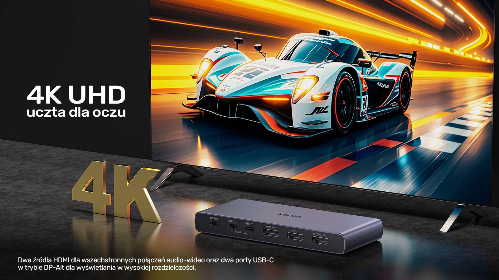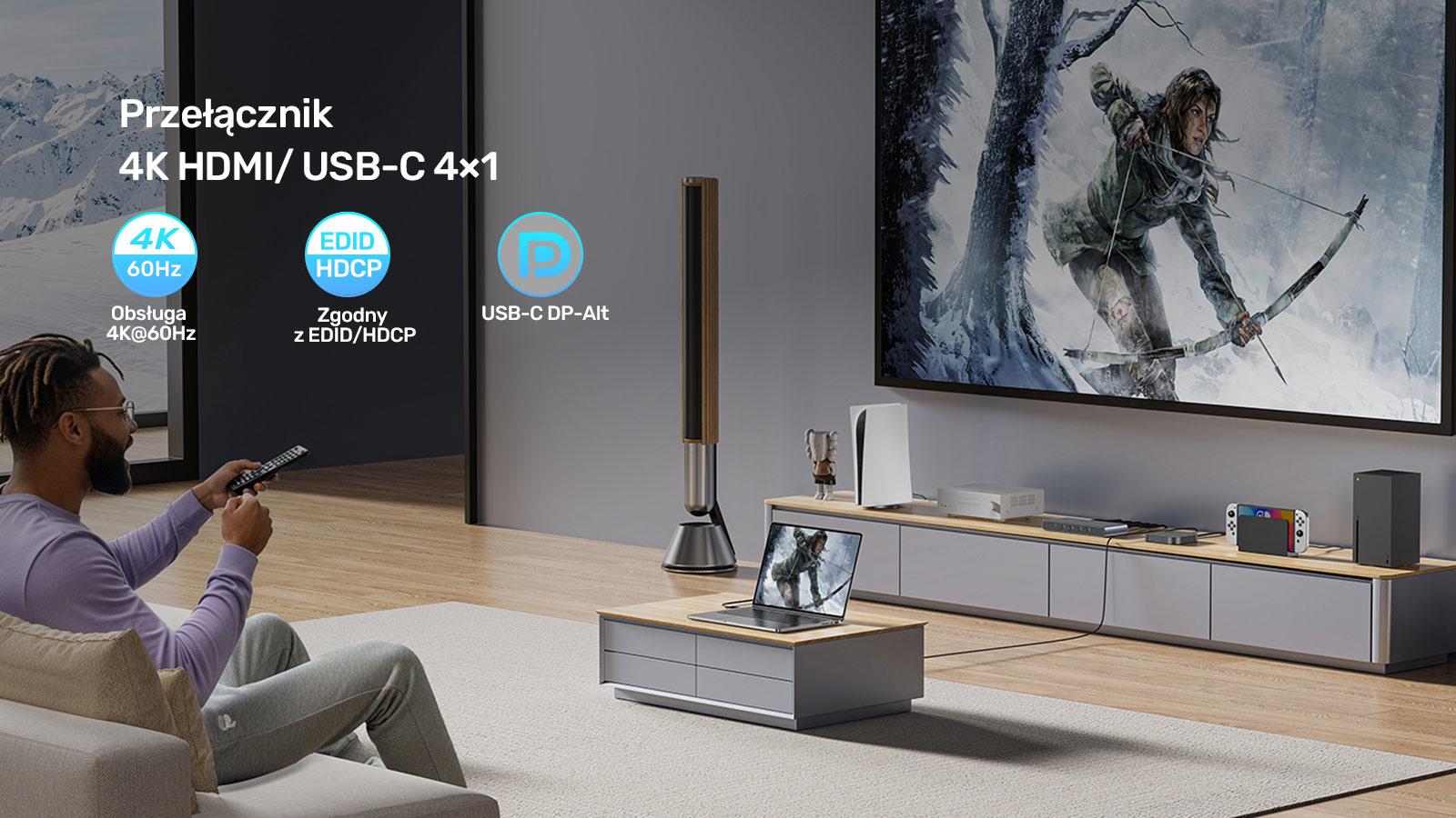 Tento přepínač se skvěle hodí do kanceláře, domácího zábavního centra nebo zasedací místnosti. Můžete jej použít k pohodlné prezentaci diapozitivů, přepínání zdrojů videa nebo přehrávání různých konzolí, aniž byste museli přepojovat kabely. Možnost používat zařízení USB-C otevírá nové možnosti - i když nemáte klasické připojení HDMI.