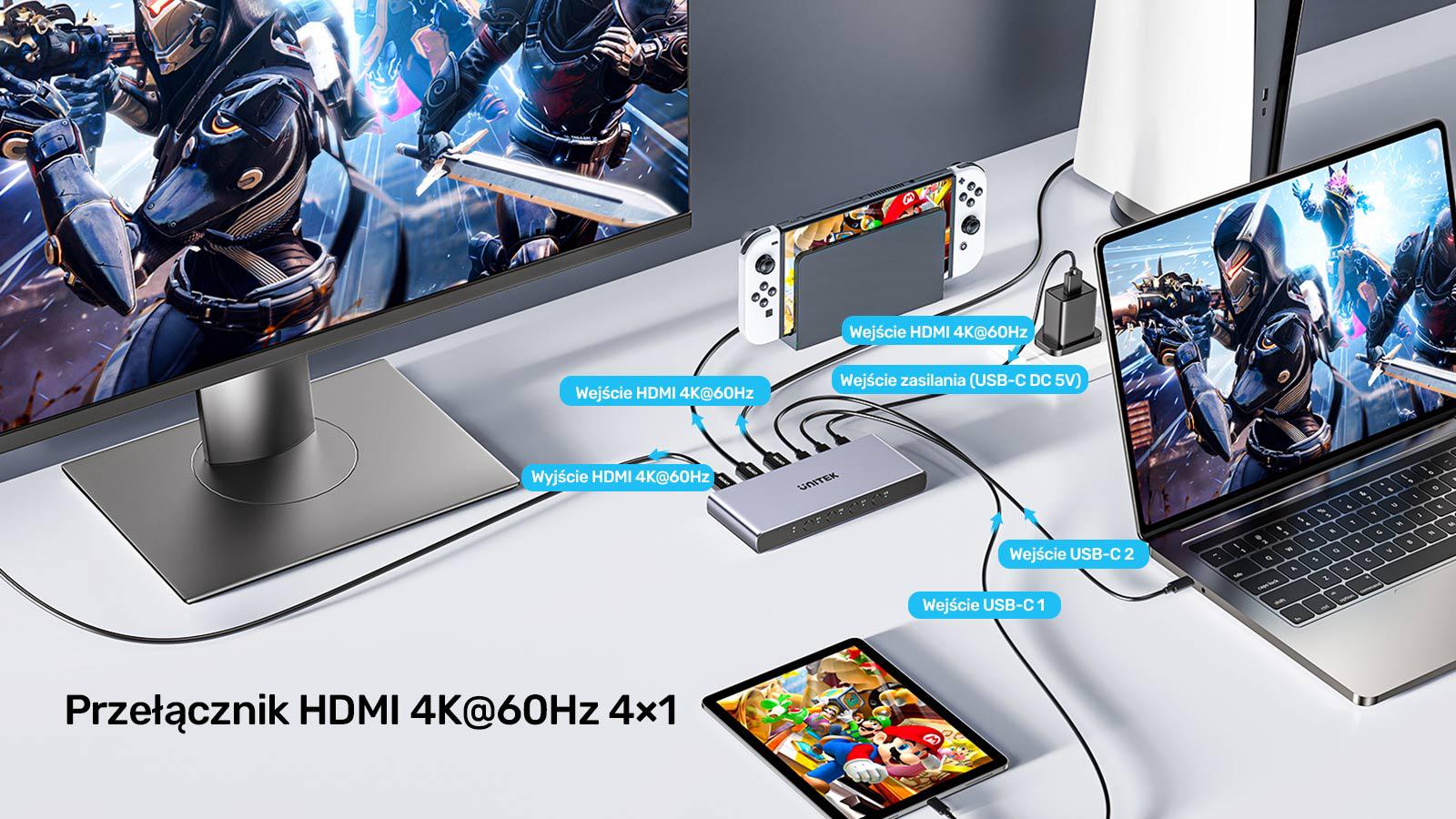 Unitek 4K HDMI/USB-C Switcher 4 out a 1 in