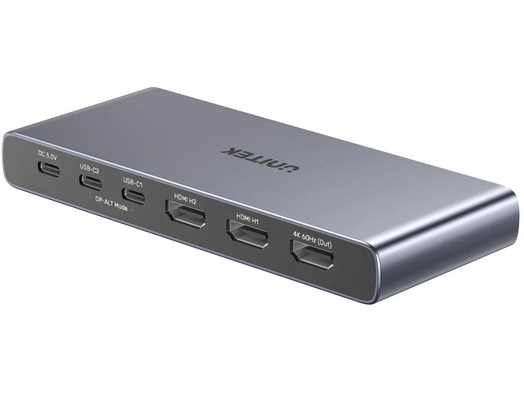 Většina přepínačů podporuje pouze HDMI. UNITEK V1313AGY jde ještě o krok dál - je jedním z mála zařízení na trhu, které umožňuje přepínat mezi signály HDMI a USB-C. Díky podpoře režimu DP Alt k němu můžete připojit moderní smartphony, tablety, iPady a dokonce i některé notebooky - bez adaptérů nebo dalších kabelů.