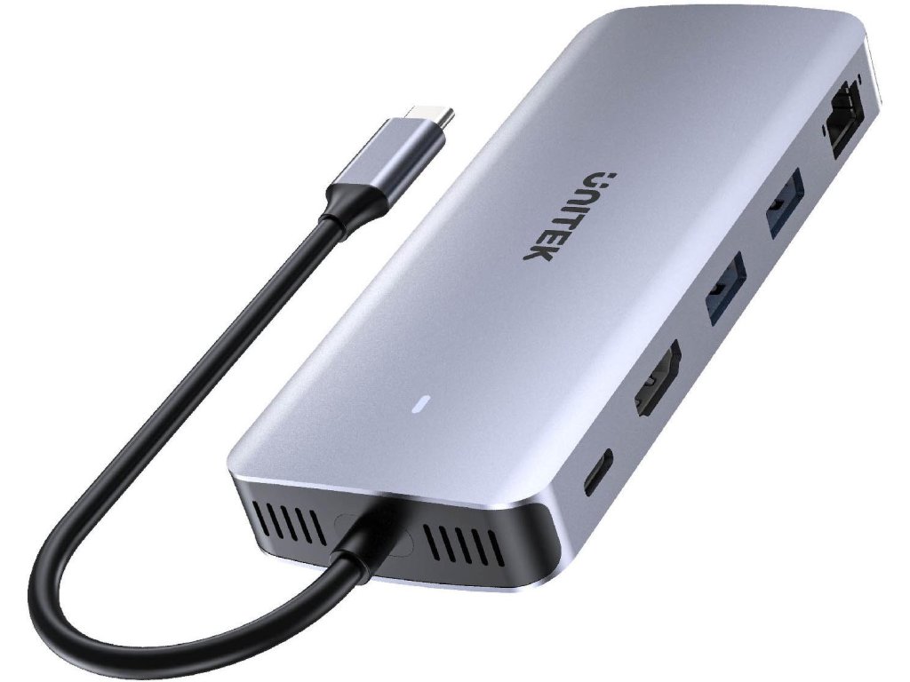 Rozbočovač USB reálně rozšíří možnosti vašeho počítače - streamujte kvalitní zvuk a video z portu HDMI, expresně přenášejte soubory prostřednictvím vysokorychlostních portů USB-A a připojte disky SSD M.2, aniž byste museli rozebírat šasi notebooku nebo počítače. Je to všechno? Vůbec ne! Rozbočovač Unitek má také ethernetovou zásuvku podporující vysokorychlostní síťové připojení a 100W USB-C PD, přes který můžete nabíjet notebook, k němuž je toto praktické příslušenství připojeno!