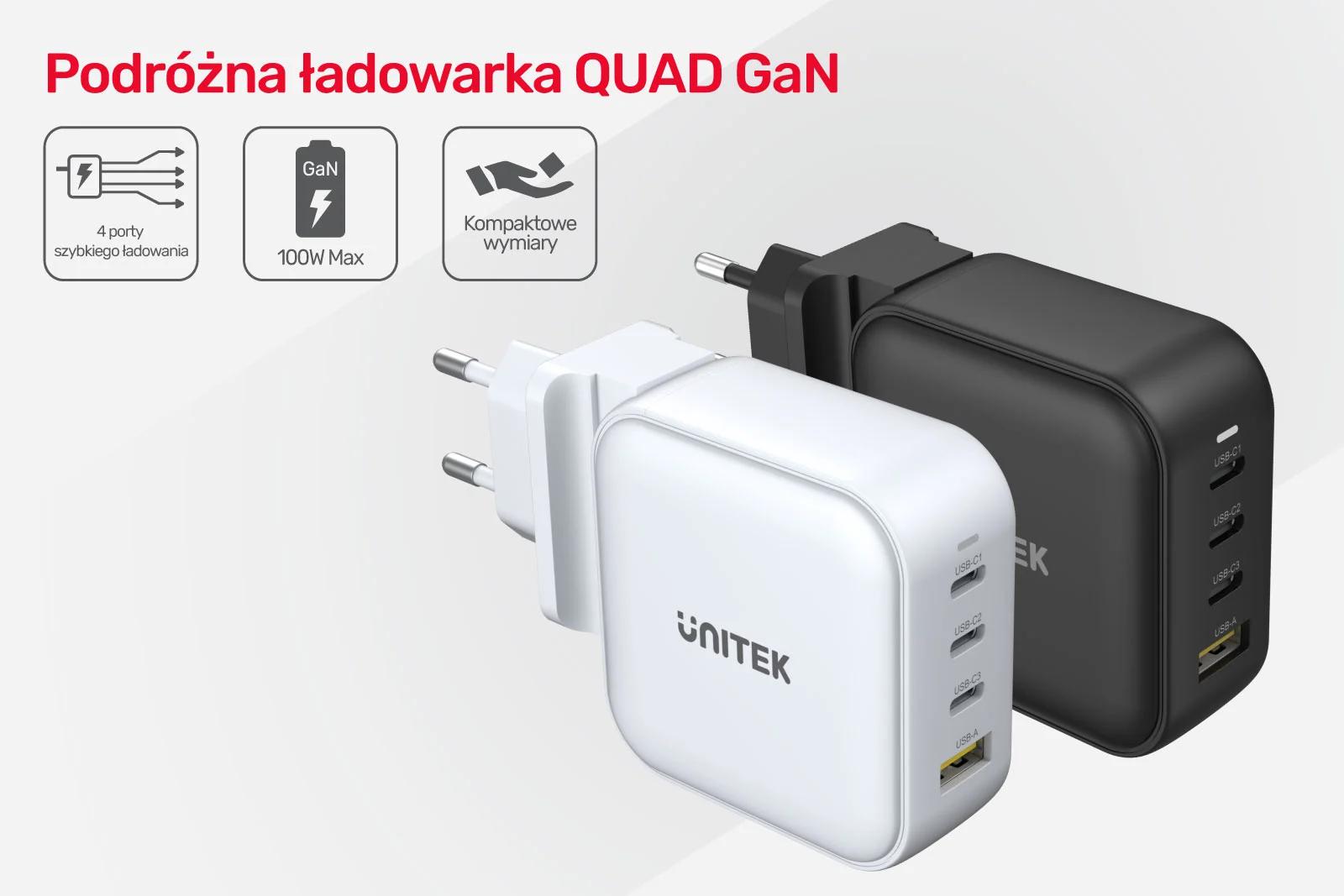 Unitek GaN 4portová síťová nabíječka, PD 100W QC3.0 černá