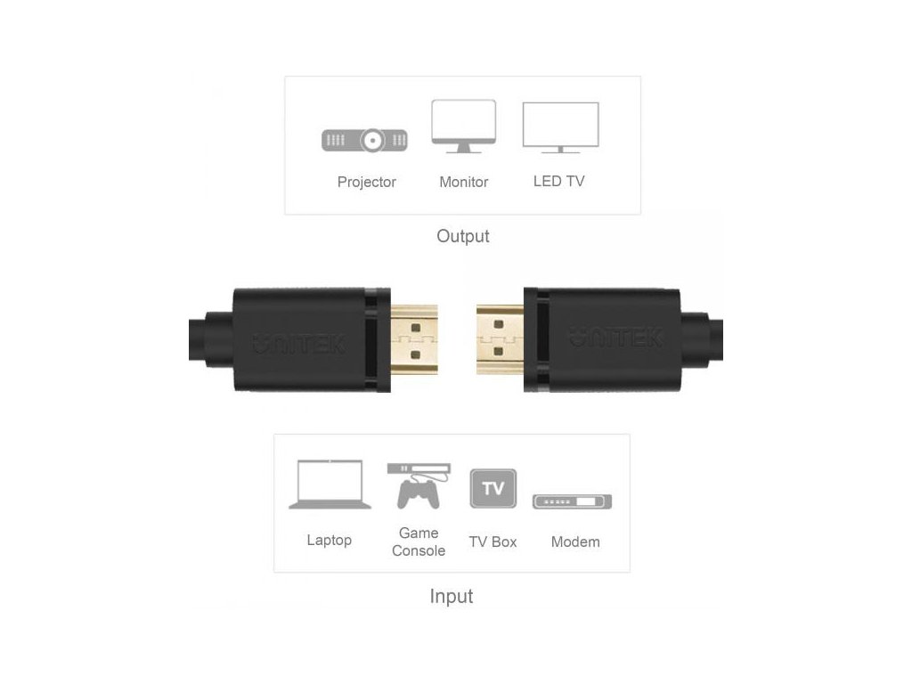 - Všechny kabely značky UNITEK podporují HDMI 1.4 a kratší kabely (od 1 do 3 metrů) podporují také HDMI 2.0.