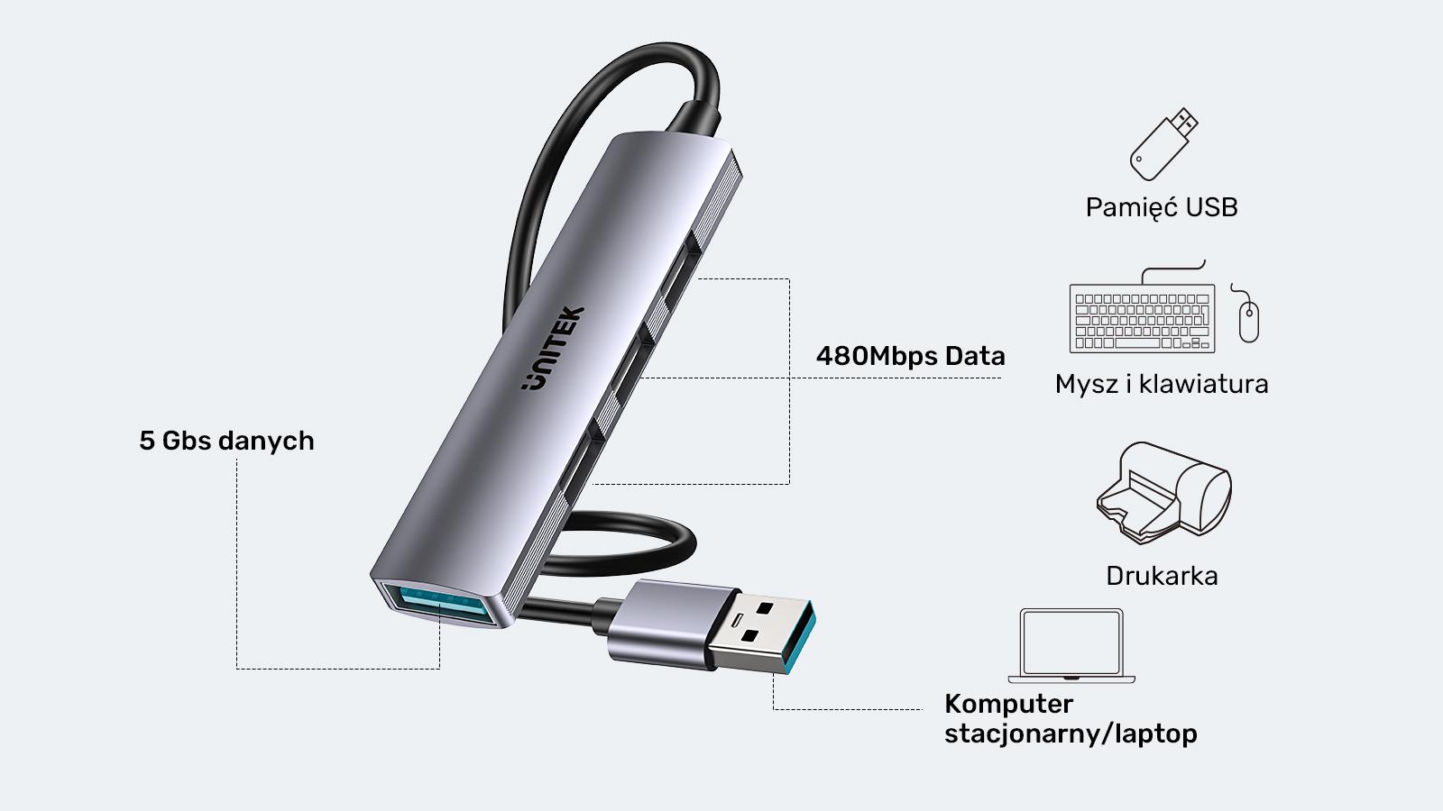 - Nemáte na svém notebooku dostatek portů? Tento rozbočovač mění 1 port USB-A na 4 - připojte více zařízení najednou bez nutnosti neustálé výměny.