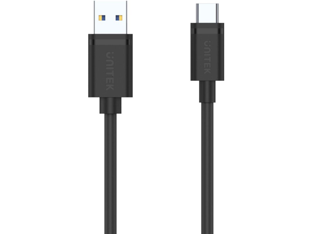 Kabel USB-C na USB-A značky Unitek pro synchronizaci a nabíjení mobilních zařízení s konektorem USB typu C, jako jsou tablety a chytré telefony.