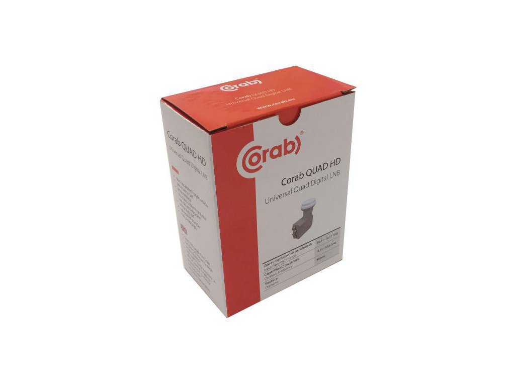 - Konvertory Corab Quad HD jsou plnoformátová zařízení určená pro příjem satelitních programů vysílaných ve vertikální a horizontální polarizaci. Ideální pro příjem digitální televize s vysokým rozlišením (HD)