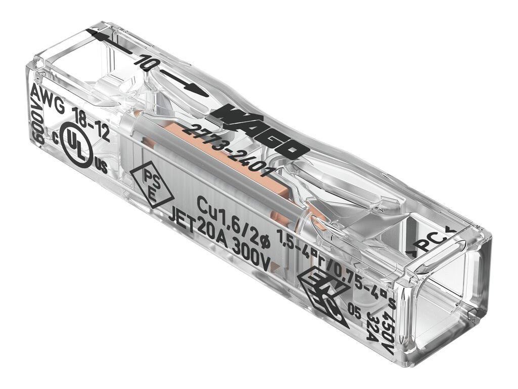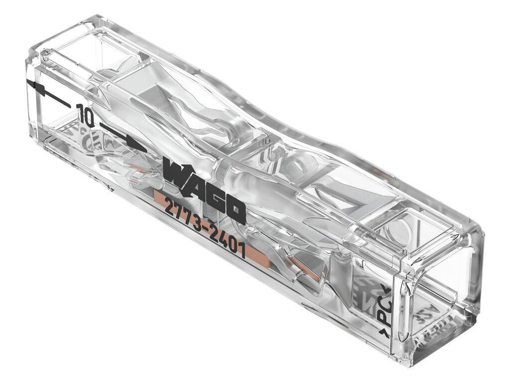Rychlospojka WAGO 2773-2401 je díky své rychlosti a jednoduchosti nepostradatelnou součástí každého elektrického projektu. Díky intuitivnímu designu ji můžete instalovat bez speciálního nářadí. Stačí jedno kliknutí a vodiče jsou bezpečně propojeny. Tím se nejen zkracuje doba instalace, ale také odpadá nutnost složitých technických kroků. S WAGO ušetříte čas a snížíte stres spojený s elektroinstalací.