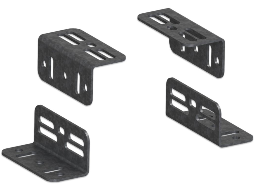 Díky použití pozinkované oceli jsou odolné vůči korozi a drsným povětrnostním podmínkám. Montážní otvory umožňují přizpůsobení úhelníků různým řešením, pokud rozteč šroubů nevyhovuje modelu pohonu, stačí vyvrtat otvor na správném místě.