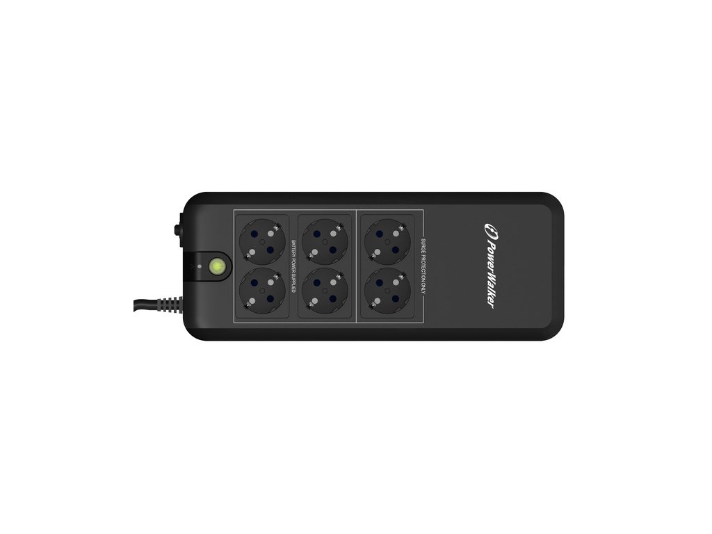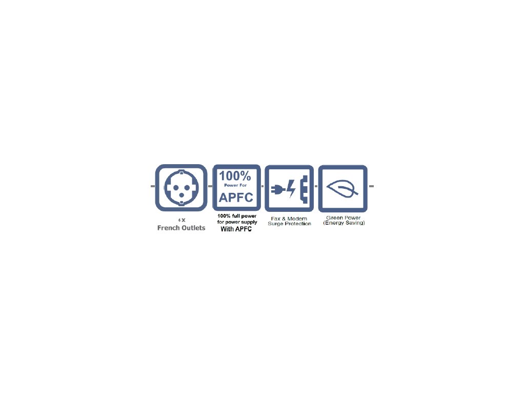 Tato UPS je vybavena 6 uzemněnými zásuvkami (PL/FR) s přepěťovou ochranou na všech zásuvkách, včetně 4 záložních baterií, a je ideální pro použití v domácnosti nebo kanceláři. Vzhled UPS, podobný vzhledu standardní napájecí lišty, umožňuje její umístění na místech, kde standardní UPS není praktická. Speciální přihrádka na baterie umožňuje uživateli snadnou výměnu baterie bez nutnosti externího servisu.