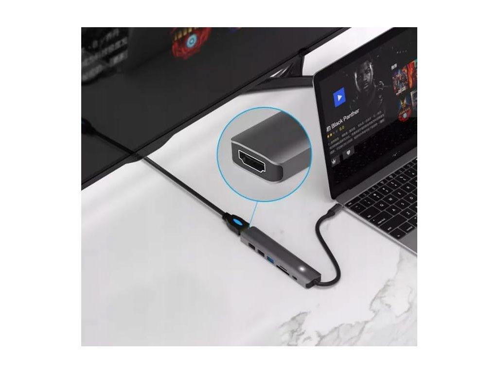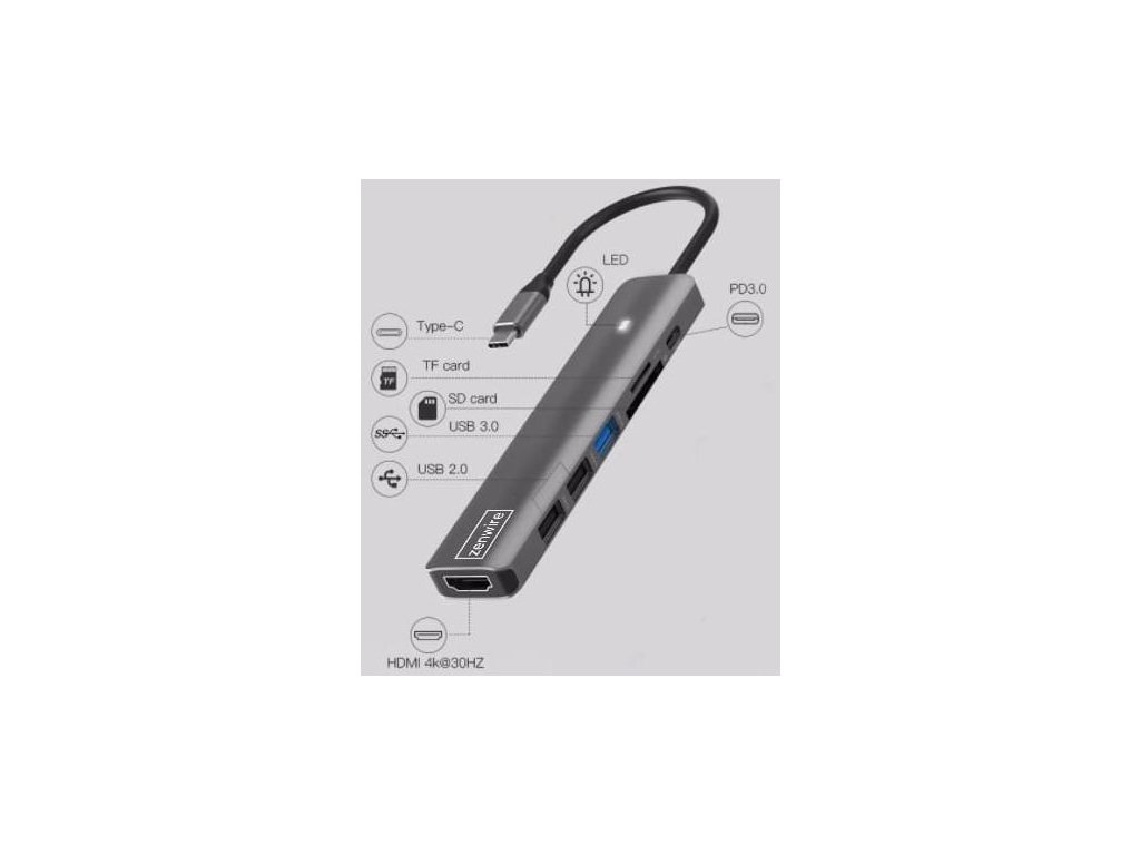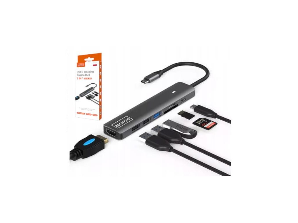 USB-C ADAPTÉR HUB 7v1 HDMI 4K USB 3.0 SD PD Zenwire BS-HC703