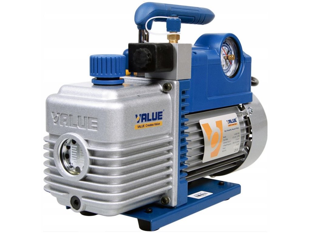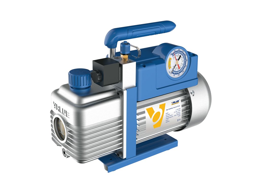 Vakuová pumpa pro použití s chladivy HFC a HFO (např. R32, 1234yf). Dvoustupňová vývěva pro použití v chlazení a klimatizaci.