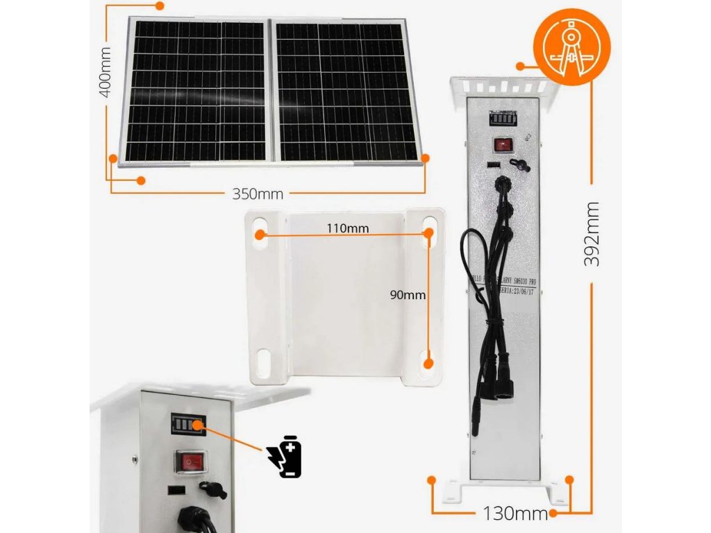 - Vysokokapacitní baterie, což zajišťuje dlouhý provoz i při nedostatku slunečního světla.