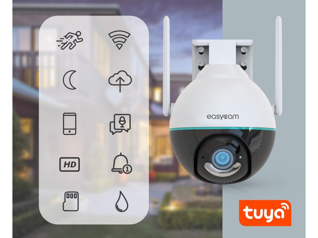 EasyCam venkovní WiFi Tuya 4MP IP PTZ kamera EC-4PT4L - Klíčové vlastnosti: