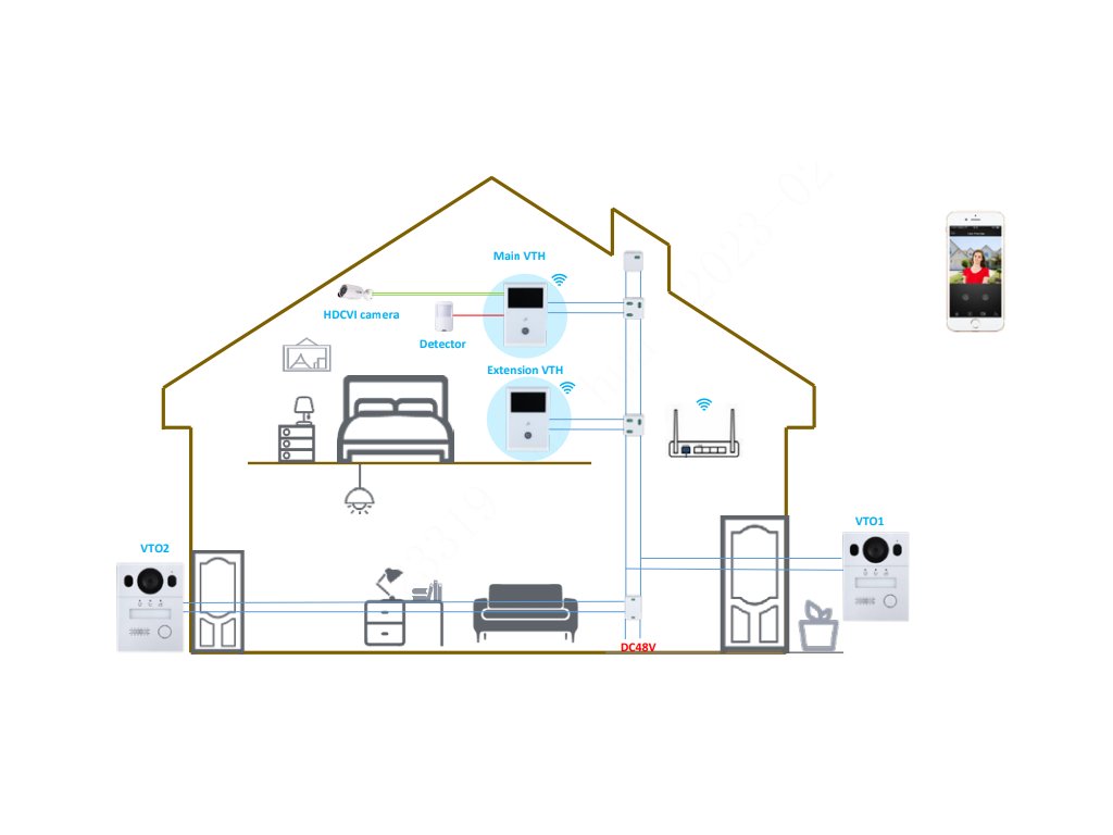 - Nabízí videointerkom, který komunikuje s VTO v poloduplexním režimu a s aplikací v plně duplexním režimu.