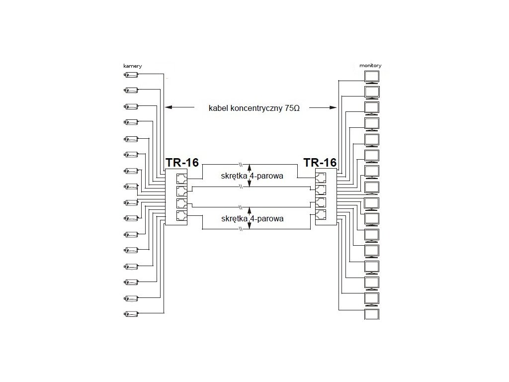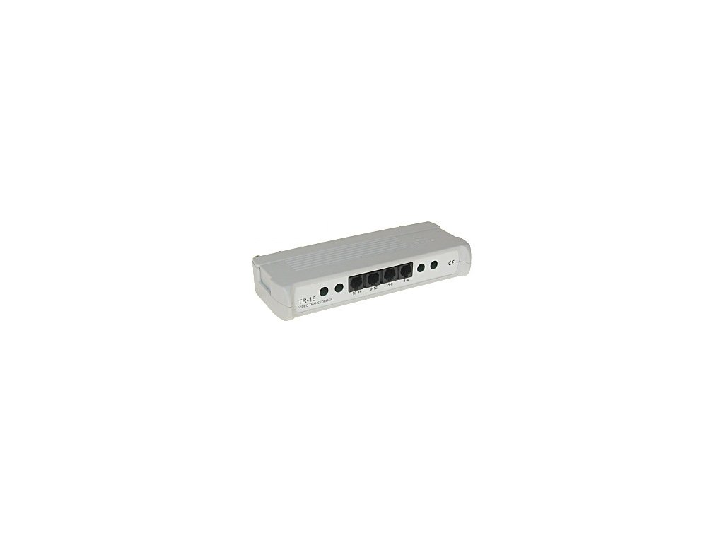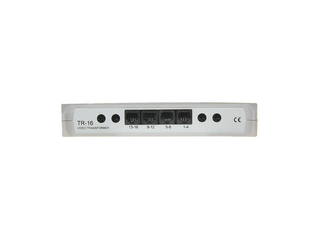 TR-16 je určen pro přenos videosignálu ze šestnácti kamer pomocí krouceného páru. Zařízení vyrovnává impedanci koaxiálního kabelu 75Ω s impedancí symetrického kabelu a zajišťuje přenos videosignálu až na vzdálenost 400 m.
