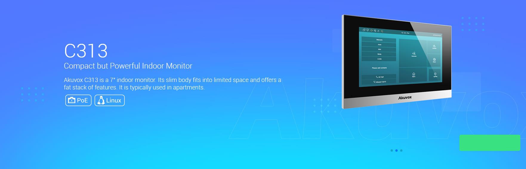 - Akuvox C313W-2 je moderní video-interkomový monitor, kterýnabízí spolehlivou a pokročilou audio a video komunikaci s interkomypři zachování nenápadného designu a možnosti rozšíření o další funkce. Je to ideální řešení pro použití v různých typech budov.