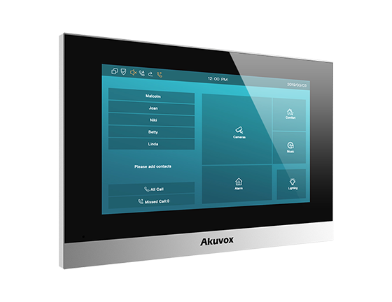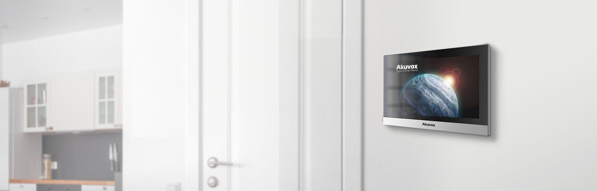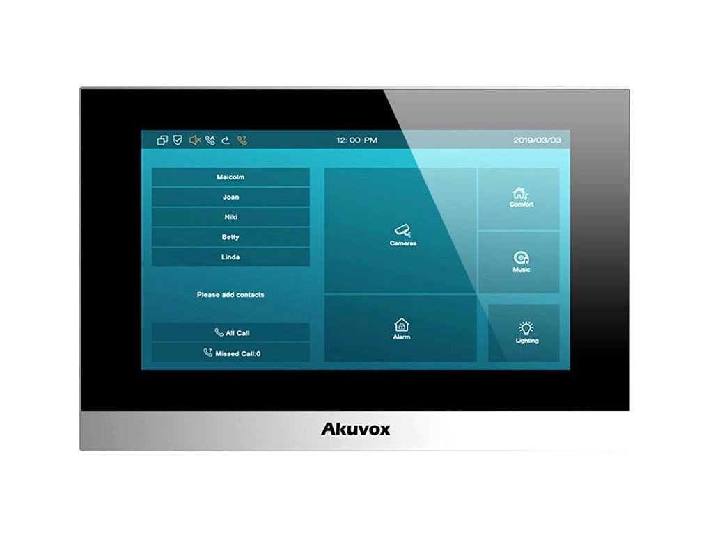 - Multifunkčnívideomonitor Akuvox C313W-2 s operačním systémem Linux umožňuje audio a video komunikaci s interkomy prostřednictvím protokolu SIP 2.0 a poskytuje bezkonkurenční uživatelský zážitek díky svému7" dotykový displejv diskrétním, prostorově úsporném provedení.