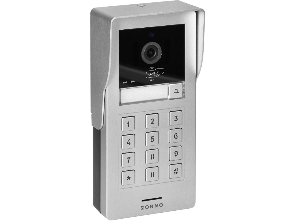 Venkovní panel je vybaven vestavěnou klíčenkou RFID a čtečkou bezkontaktních karet, které umožňují otevření elektrického otvírače dveří na brance nebo dveřích po přiložení klíčenky nebo karty ke čtečce.