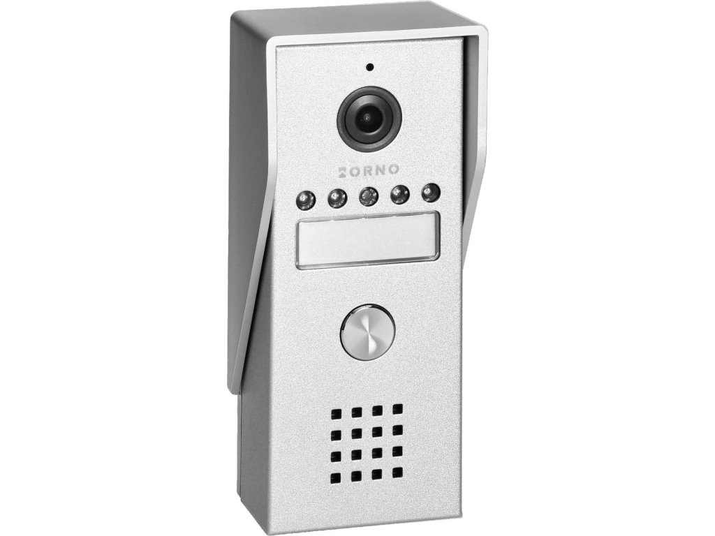 - Robustní vnější panel s kamerou - Díky hliníkové konstrukci s krytím IP44 a ochrannému krytu je zařízení odolné vůči nepříznivým povětrnostním podmínkám a mechanickému poškození. Kamera s úhlem záběru 68° a infračervenými LED diodami zajišťuje dobrou viditelnost i v noci.